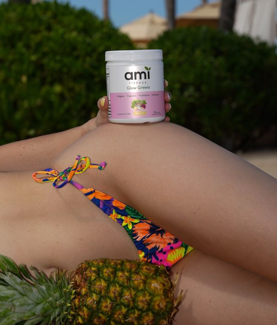 "In a market where there are thousands of options, Ami Fitness Glow Greens is a true standout. In my experience, I’ve found these types of supplements to taste chalky or have some overpowering/ artificial flavor, but not here! I was pleasantly surprised by the light, refreshing flavor. It dissolves nicely in water but also super easy to throw in my smoothies. Considering all of the health benefits (vegetables, probiotics, collagen, etc) this is the perfect all-in-one supplement."
